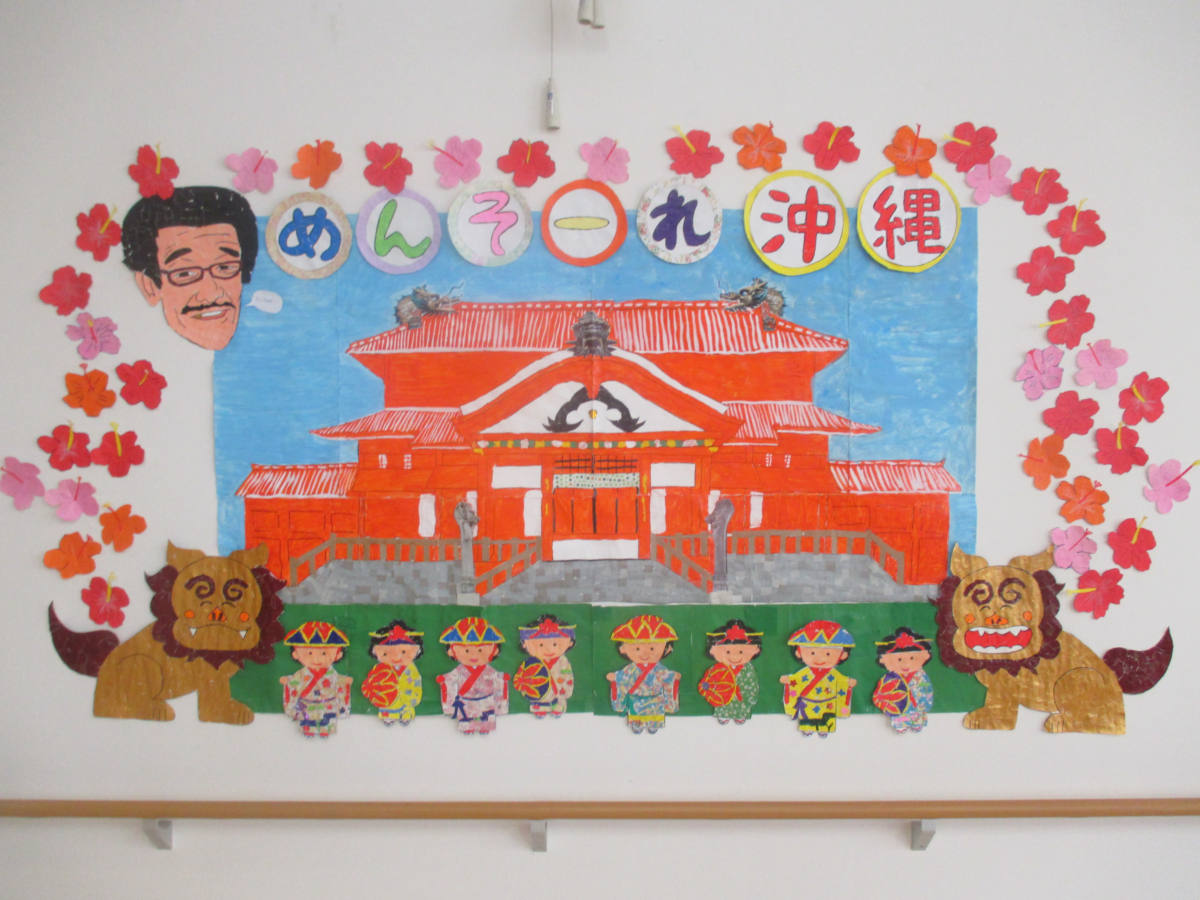 玄関の入り口には今月の行事の運動会の壁飾りです。