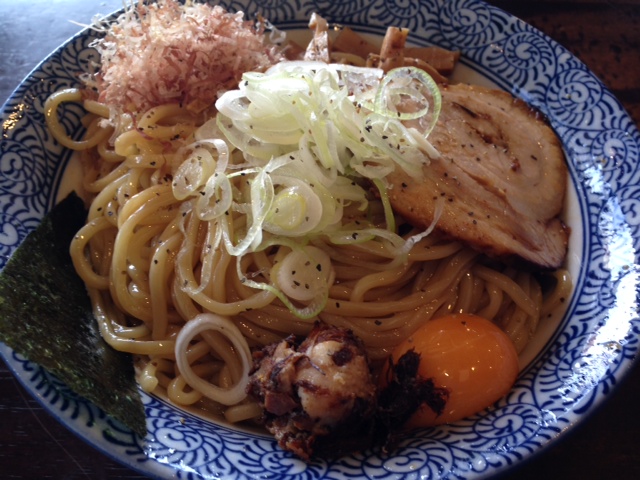 つけ麺専門店になりました。久しぶりに来店しましたが、頼んだ叉焼つけ麺は、厚めで大きめのチャーシューが3枚のって麺の量も普通で300gとやはり腹いっぱいになります。前よりマイルドというかよく言えば宗田節中心に上品に、悪く言うとインパクトが薄くなった感じです。麺は冷やしてあり、がっちり噛み応えある硬めの太麺です。連れの新登場野ぶしつけ麺は、野菜がガッツリ入ってさらに腹いっぱいになる事請け合いですが、タレが薄まるのと本来のつけダレとワシワシとつけ麺を喰らうからすると邪魔者みたいなコメントでした(健康にはもちろんこちらがいいのですが・・・。また油そばは、最初はいいのですが、後半しょっぱくなり、その量に飽きてくるというコメントでした。ここは、お腹ペコペコな時に、スタンダードなつけ麺を!というのが一番みたいです。
