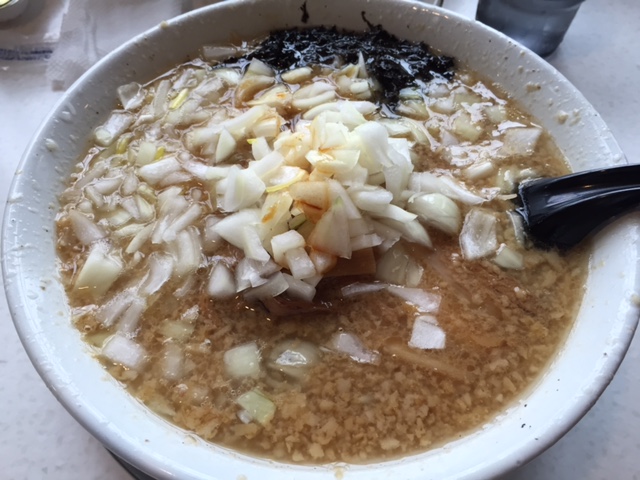 過去に店情報を載せてなかったんで、いまさらながら、火曜定休11:00~15:00.17:00~20:00.今回はこってりらー麺を初めて頂く、作り方で面白かったのが、普通背脂ラーメンって出来上がったものにザルで豚肉の脂の塊をチャッチャと振るのだが、ここでは魚粉、背脂をチャッチャした後にスープを入れてました。海苔1枚・味玉半分・ねぎ・細いメンマ多数・厚めのデカい炙りチャーシュー1枚、これで650円はお得です。喜多方系に近い縮れ平太麺に甘めの魚介出汁(特に鰹節)ガツンの背脂醤油スープ。チャーシューは個人的に原料が越後もちぶたか県内産(最低国産)でラーメンに絡みつく極薄豚バラが好きで厚いデカいはどちらかというと敬遠なんだけど、ここの炙りチャーシューは好きです。こってり初トライだったけど、やはりここは味噌か魚介出汁をピュアに楽しむなら通常のらー麺がいいかも?年齢のせいもあるかも!?甘めの魚介ラーメンを食すのは一本気が一番!