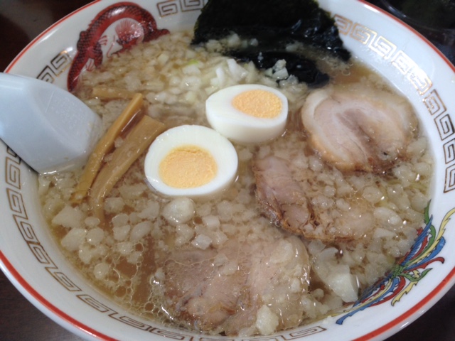 前回(2007.4.12)記事・おすすめ:ぴか一チャーシュー800円 おすすめ度:100% 結構な数通っているわりには、昔のデータのままだったし、久しぶりに行ったので更新します。横越方面に行った際でラーメンが食べたくなった時は必ず行く店です。メニューはぴか一めん(背脂醤油・太麺)が一押し商品としてあり、醤油細麺もあります。味噌や限定の塩などがあります、それぞれ麺の量やチャーシューなどのトッピングも選べます。最大の特徴は背脂はミンチで粒を粗くしている事で、食感があり、あまり脂っぽくない事です。スープは豚骨ベースに鶏ガラ、香味野菜シンプルですが、コンソメのように深い味わい。麺は太麺ですが、そんなに太くはなく、私好みの太さでベストマッチ。ねぎ、メンマ、ゆで卵にチャーシュー(これもなかなか美味い)そして背脂、見事なコラボレーション!ただ昔に比べて背脂が柔らかくなった(前はもっとプチプチしていた)様な気がします。駐車場(店前に4~5台はありますが)があれば最高なのですが。