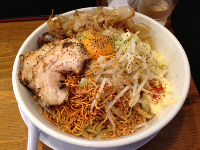 (前回2013)食べた品:まぜめん680円+大盛100円+チャーシュー2枚50円+チーズ50円+ベビースター0円=880円