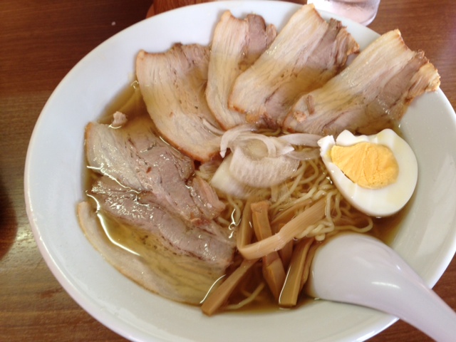 人情横丁には現在「信吉屋」「きのじや」「政吉」そしてこの「おふくろ」とあっさり中華そばの宝庫となっている。今回初訪問の「らーめんおふくろ」は、カウンター8席のみ。おかあさん一人でやっていて、常連さんのお年寄りも多く集まる正に人情横丁!茹でている時の物凄いかんすいの匂いが気になったが(鍋から近いからしかたないか!?)仕上がりは、上品な出来栄え。薄いばら肉チャーシュー6枚・メンマ・ゆで卵半分・玉ねぎスライス、極細縮れ麺に懐かしいシンプル鶏ガラ系醤油スープ。イイね!信吉屋・政吉・きのじや・おふくろと続けて食べた事がないからわからないが、どこが一番美味しいのかな?気分と好みかな!?