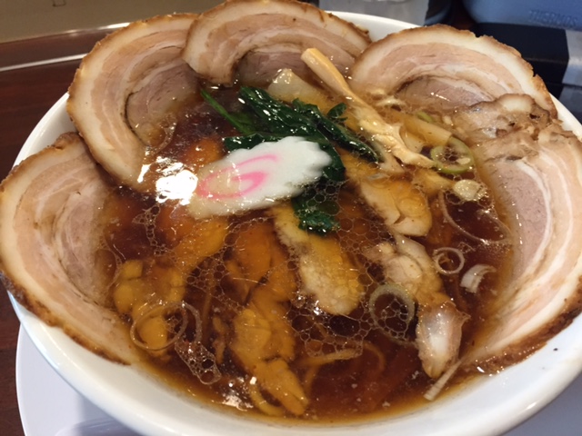 Dグループ出身の中では「たまる屋」に並んで好きなお店。元は同じでも同系統のラーメンのみを出すお店と同じ系統でも研究され美味しいものや新しい挑戦をし続ける店主とで差がでます。メニューもちょっと変わってつけ麺750円で並(240g)大(320g)特(400g)が同じ価格にて提供と大盤振る舞いとなってました。とりそば600円ちゃーしゅうとりそば850円、大盛80円増し。新メニューで味噌らーめん830円味噌ちゃーしゅう980円辛味噌60円増しとありました。今回頼んだちゃーしゅうとりそばは、小さめ鶏チャーシュー3枚・豚バラ肉チャーシュー6枚・ナルト・ねぎ・メンマ・ほうれん草、やや細めのストレート麺、鶏脂がタップリ浮いた鶏ガラベースだが、味醂系の和風醤油味で鴨そばを彷彿させる味のスープで美味しかった!ただこの鶏そばには、豚バラチャーシューは余計な注文でした。チャーシューとってシンプル鶏そば600円なら大変価値があります。