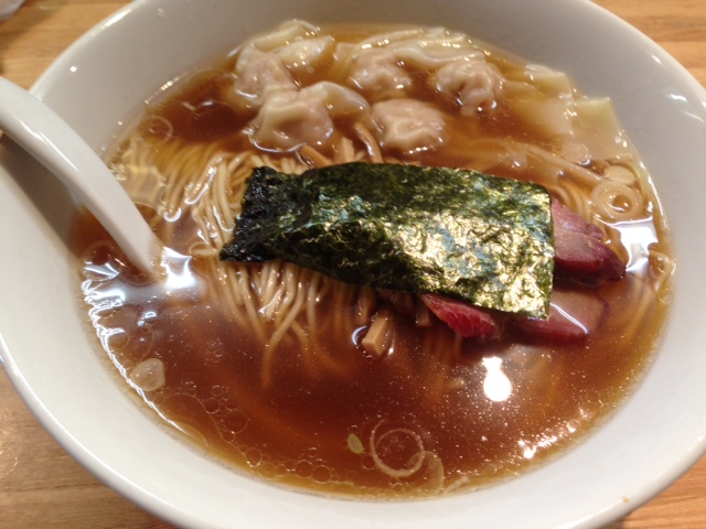 こちらもネットで吟味した2店のうち1店(ひとつのネット評価は、偏っていたり、超有名店か名の通った万人受けのチェーン店が上位なので、縦横斜めで、ブロガーなどの信用度または自分に好みがあっているか度で判断してます)昼のみ営業で火曜定休。カウンター12席のみ。11時~14:30の営業で12席のみだから開店より行列ができるという。支那そば650円味玉そば750円わんたんそば800円焼豚そば870円しおそば650円つけそば700円。味玉100円メンマ大盛150円麺大盛100円増し。豚角煮ごはん300円もある。頼んだわんたんそばは、海苔1枚・ねぎ・極細メンマ・小さめの赤身だけのモモチャーシュー2枚(スモークした後味がした)雲呑4個、美しく盛り付けられた楕円形ストレート固ゆで麺、美しいスープ!鰹節・サバ節などの魚介、隠れた昆布ダシに、煮干しの香り!昔ながらとは、一線違う、和風でシンプルながら手の込んだスープだ!綺麗な厨房、店主の動き、特にレンゲは計算しつくされている!!やや平たい丸い先で、大きすぎず、口に持ってくると鼻に煮干しの香りが必ず来る様な仕掛けになっている。シンプルで香りを味わう中華そばには、これは真似るべきですな!つまんない事だけどすごい!と思いました。高崎レベル高い!この行った2店が高いだけ!???ちなみに同行した燕三条ラーメンが大好きな社員は、こちらの上品ラーメンはスープは美味いが麺が・・・と言っていました。私は深くてすごいラーメンだと思いました。大大坊がインパクトがあり、すぐに旨さがわかる病みつき創作系ラーメンだとしたら、なかじまは、インパクトはないが、じんわりと高度な技術でまた食べたくなる高貴なラーメンといったところか!