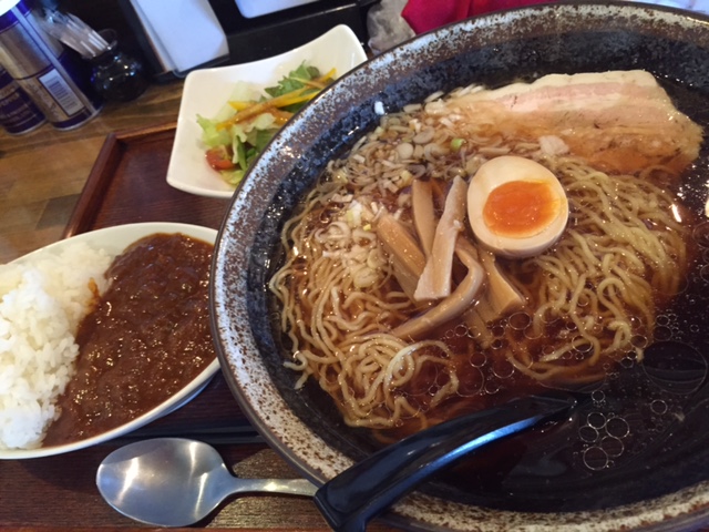 食べた品:醤油(たまり)600円+ミニカレーセット250円(ドリンク・サラダ・半カレーライス)