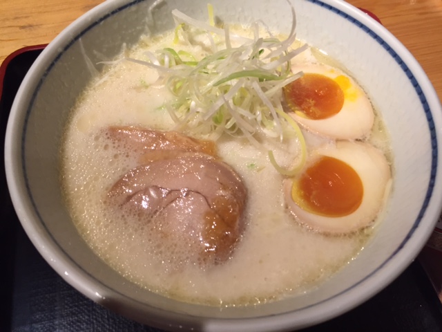 本来行こうと考えていたお店まで距離も時間もかかり、セミナーに間に合う為に東京駅すぐの所でここを選択。元々は京都「本家西尾八ッ橋」のそば処の東京進出店舗。無休・7:30~21:00。そば・うどん・中華麺の3種類をこなすお店。にしんそば1,000円鴨なんばんうどん1,000円鶏そば900円あっさり鶏そば900円が柱で、その他そば・うどんなど。全てにニッキがギンギンに効いた八ッ橋せんべいが1袋付いている。食べた鶏そばは、鶏チャーシュー2枚・味玉半分が2個・多めの白髪葱、にゅうめんの様なストレート細麺(あまり好みではないタイプでした)、異様に白い鶏白湯スープ。あっさりでそれほど鶏の深みは無いかなぁ?!京都なら水炊の「鳥初」のスープでラーメン頂きたい。でも流石食文化の京都といったところでベースがしっかりしたハズさない基礎はありました。